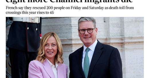 The “as eight more Channel migrants die” bit has tipped me over the edge.